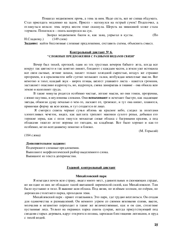 В комплексной контрольной работе, состоящей из диктанта и дополнительного
