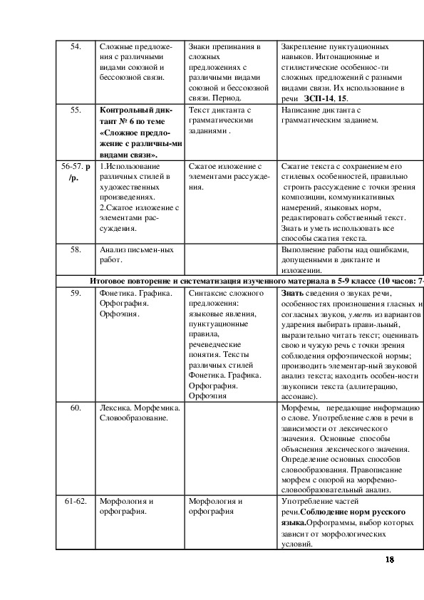 Стержневая грамматическая тема в 9 классе сохраняется традиционная – «Сложное