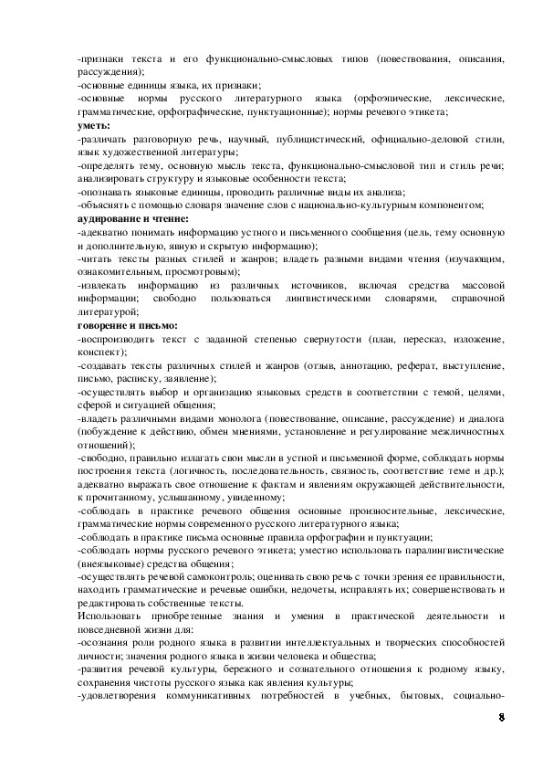 навыков, обеспечивающих свободное владение русским литературным языком в разных