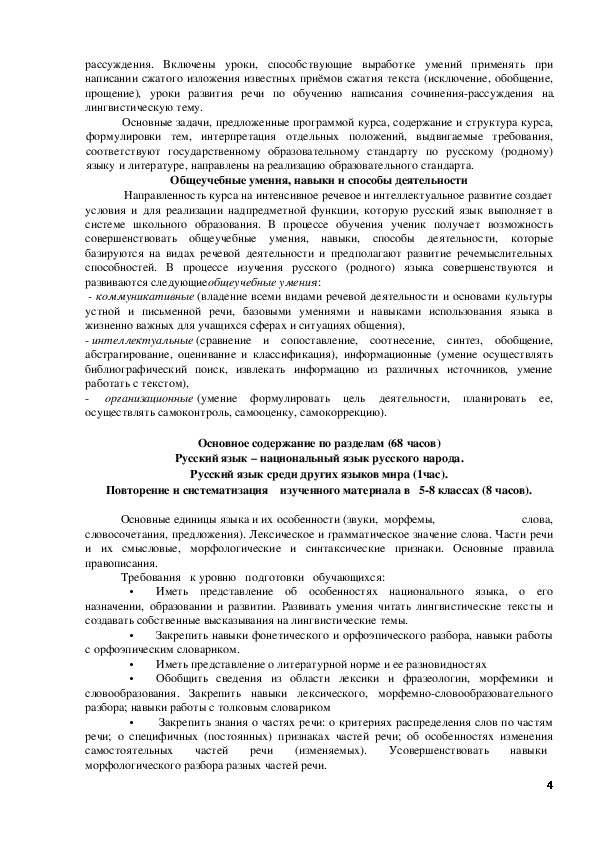 программы по русскому языку для общеобразовательных учреждений (59 классы),