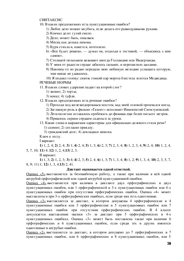 ошибок), для оценки «2» 7 орфографических ошибок.