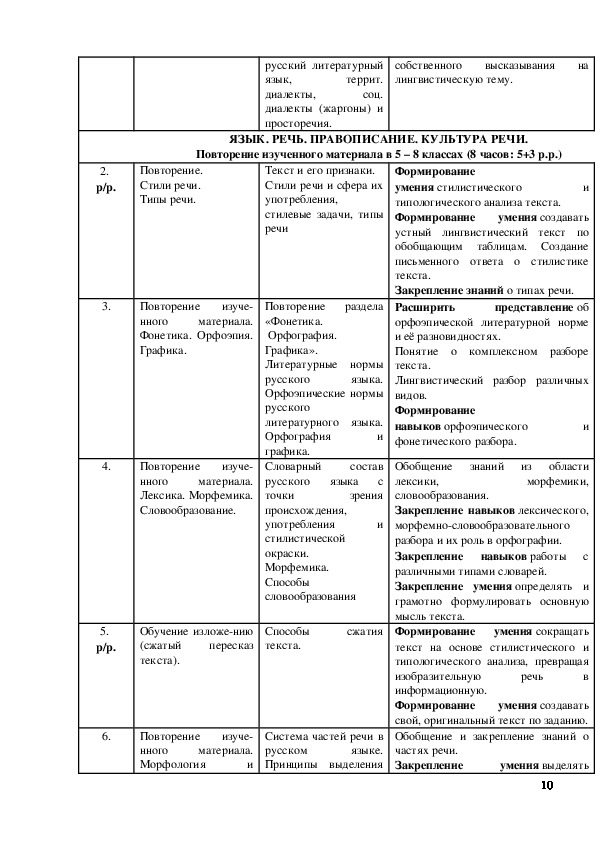 сферах человеческой деятельности; воспитание интереса и любви к русскому языку;