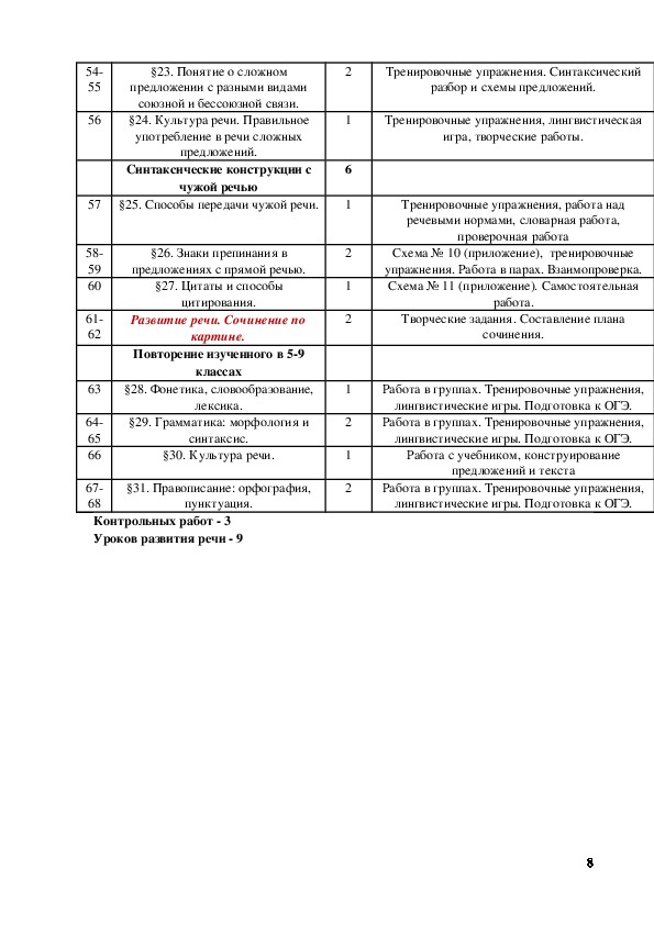 Уроков развития речи 9