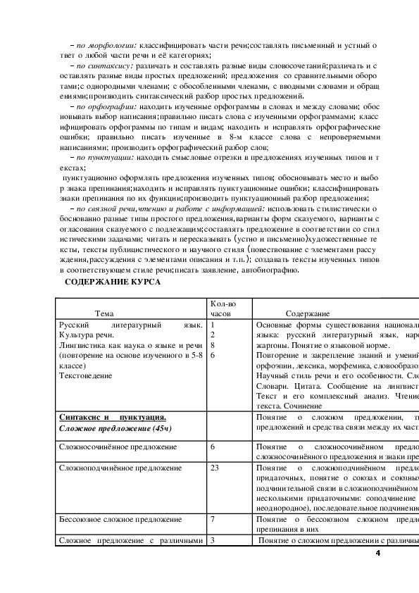 Рабочая программа по русскому языку