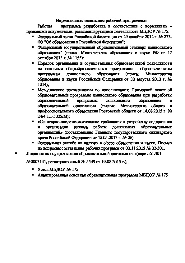 правовыми документами, регламентирующими деятельность МБДОУ № 175: