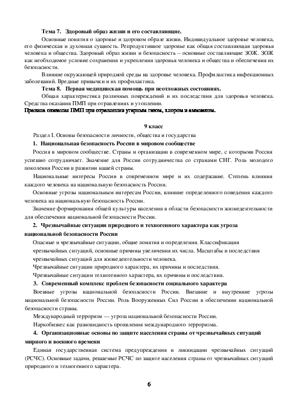 условиях опасных и чрезвычайных ситуаций, о здоровом образе жизни, об оказании первой