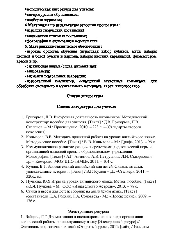 1. Зайцева, Г.Г. Драматизация и инсценирование как виды организации