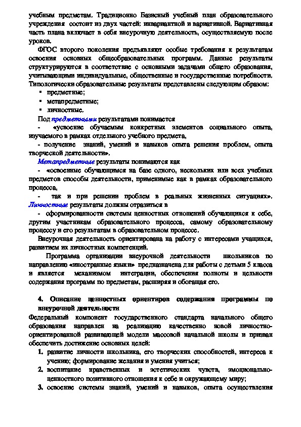 по внеурочной деятельности
