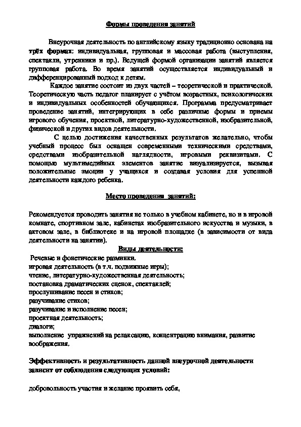 говорение и аудирование на занятиях проводятся в игровой форме.Формы проведения занятий
