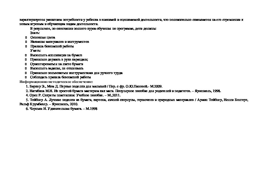 1. Баркер Э., Мом Д. Первые поделки для малышей / Пер. с фр. О.Ю.Пановой. М.2009.