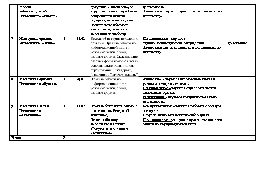 Дети учатся аккуратности, экономии материалов, точности исполнения работ, качественной обработке изделия. Особое внимание уделяется технике безопасности при работе с техническими средствами, которые разнообразят деятельность и повышают интерес детей.РАБОЧАЯ ПРОГРАММА «Умелые ручки» для подготовки будущих первоклассников.
