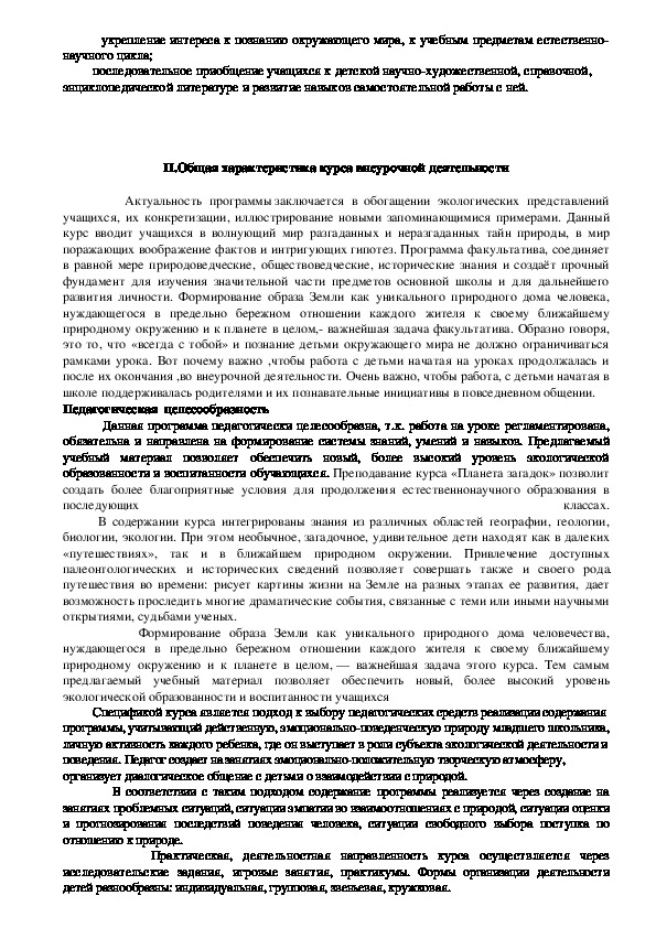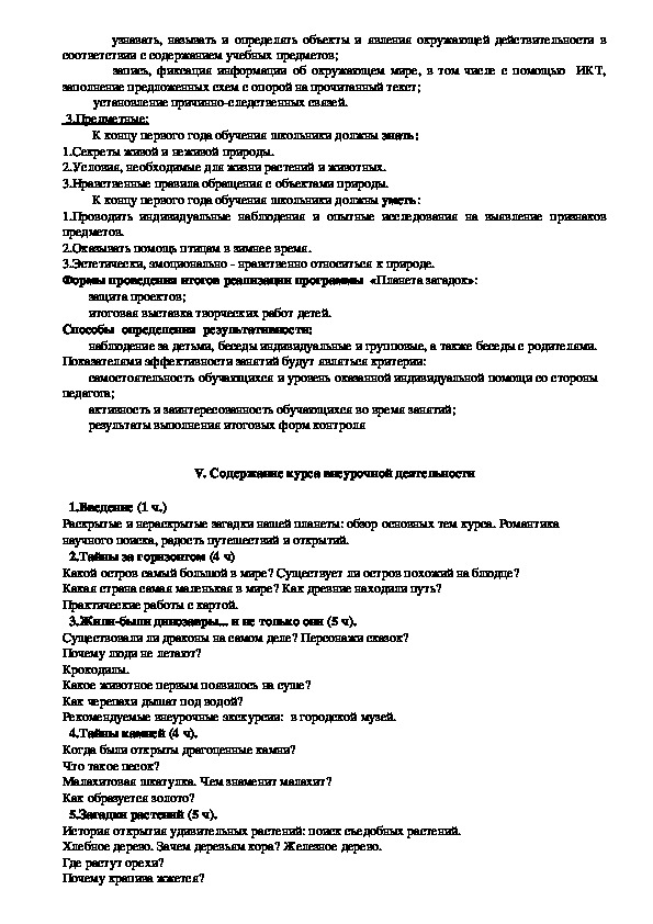имеет экологическую направленность и разработана с целью расширения курса «Окружающий