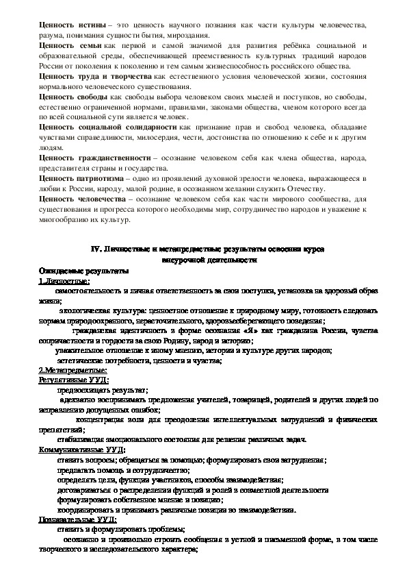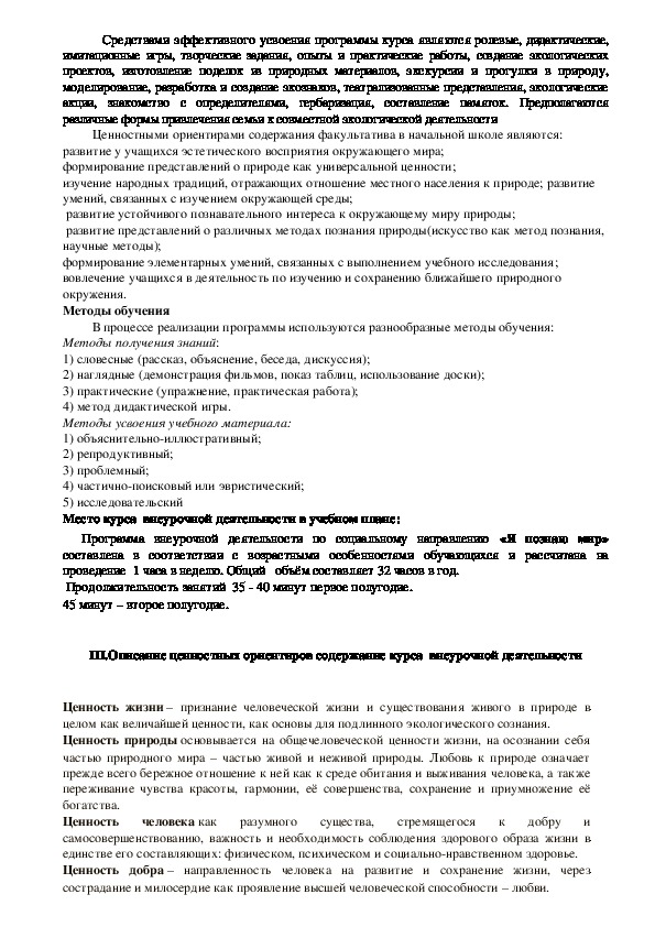 так же активное усвоение общечеловеческих ценностей и нормативов поведения. Программа