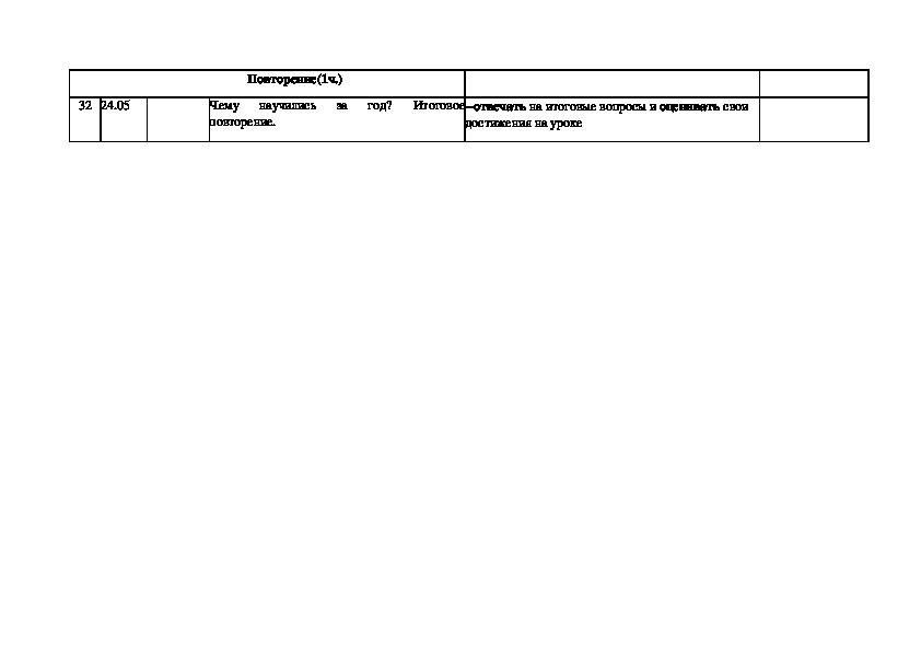 — отвечать на итоговые вопросыПовторение(1ч.)