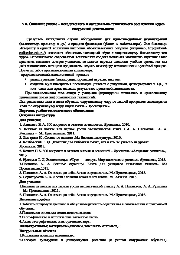 9. Сорокоумова Е. А. Уроки экологии в начальной школе. М.: АРКТИ, 2013.