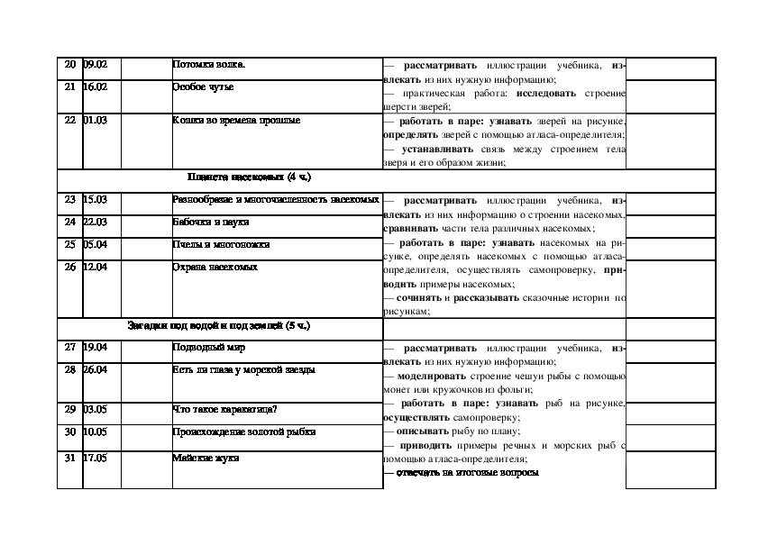 1.Tаблицы природоведческого и обществоведческого содержания в соответствии с программой