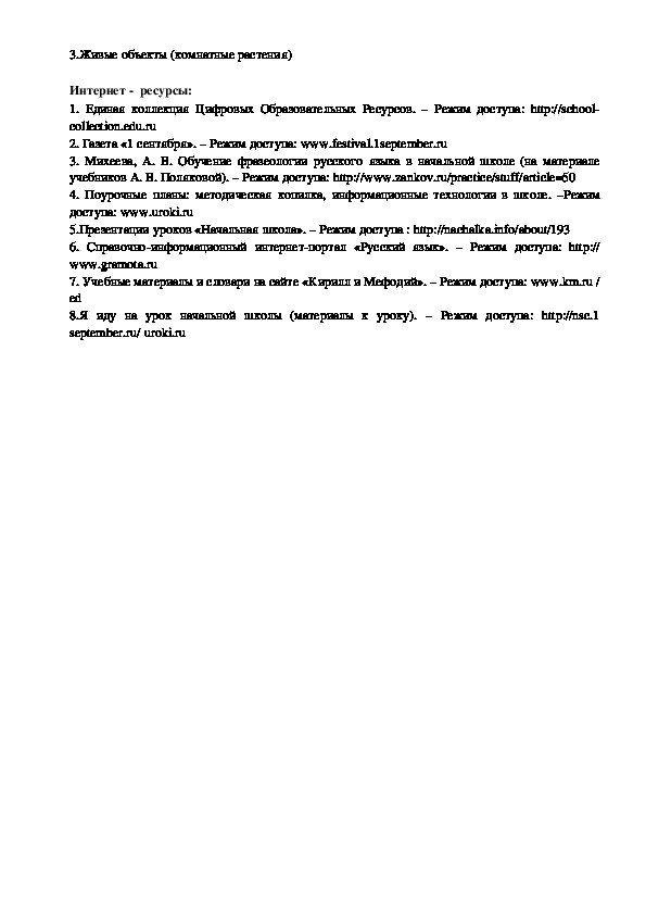 5.Презентации уроков «Начальная школа». – Режим доступа : http://nachalka.info/about/193