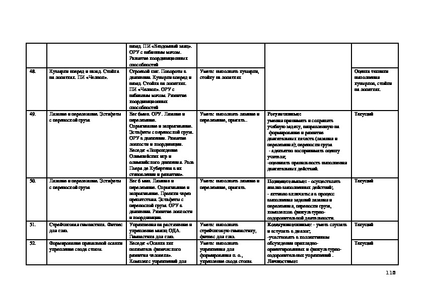 курса «физическая культура»