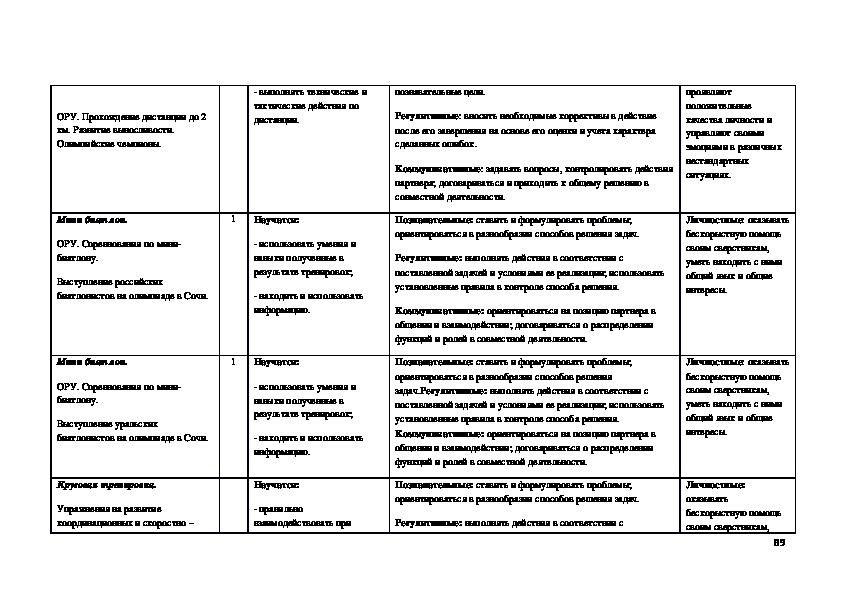 активного отдыха. В основной школе данная цель конкретизируется: учебный процесс направлен на