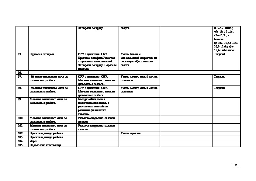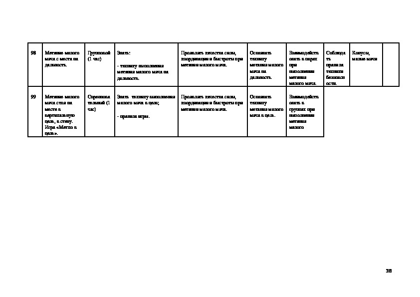 метания малого мяча.
