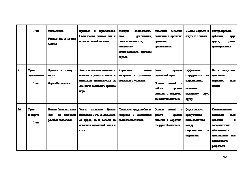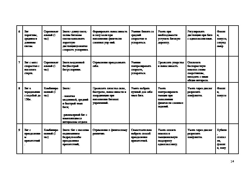 Распределение учебного времени прохождения программного материала по физической культуре (14