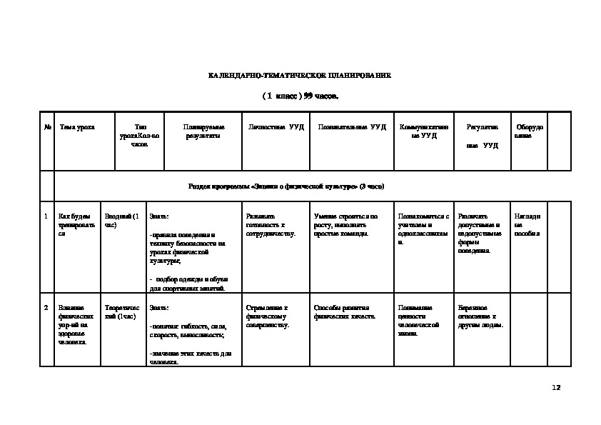 на изучение предмета «Физическая культура» в начальной школе выделяется 414 часов, из них в 1 классе 99