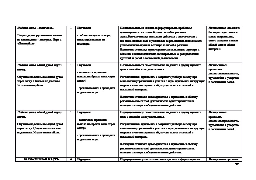 Вариативная часть