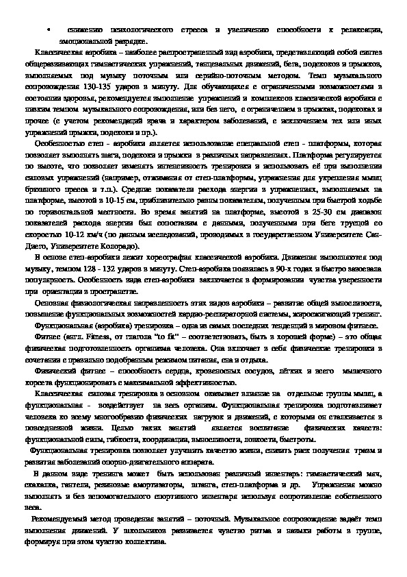 аэробики для укрепления и сохранения собственного здоровья, организации
