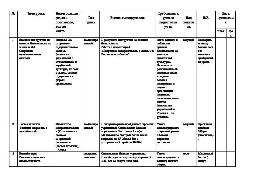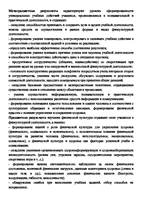 РАБОЧАЯ УЧЕБНАЯ ПРОГРАММА ПО ФИЗИЧЕСКОЙ КУЛЬТУРЕ