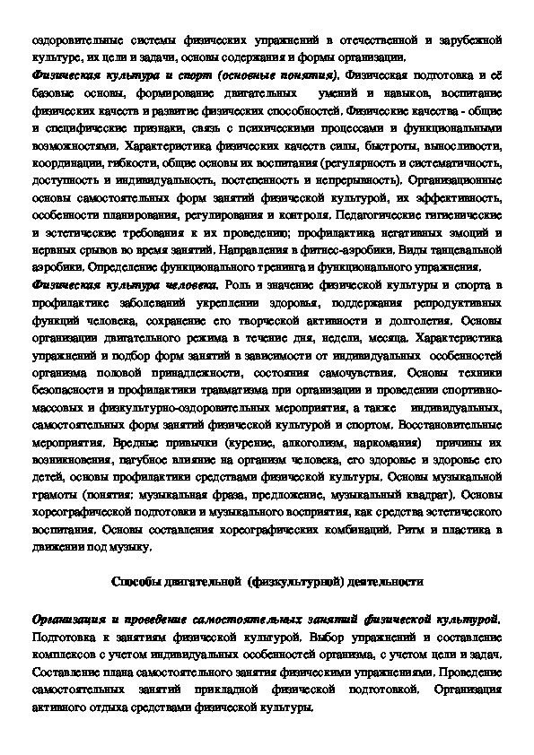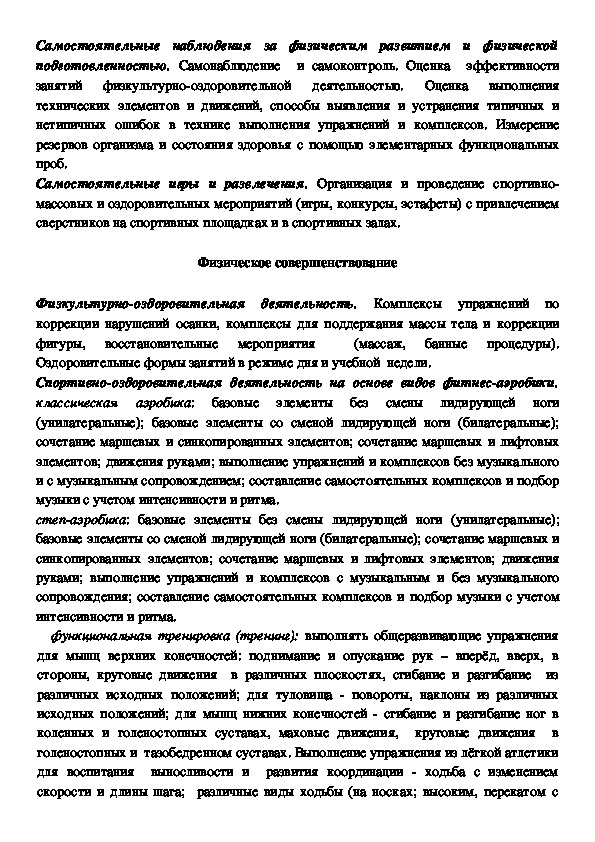 включает в себя проведение обязательных занятий по физической культуре в пределах