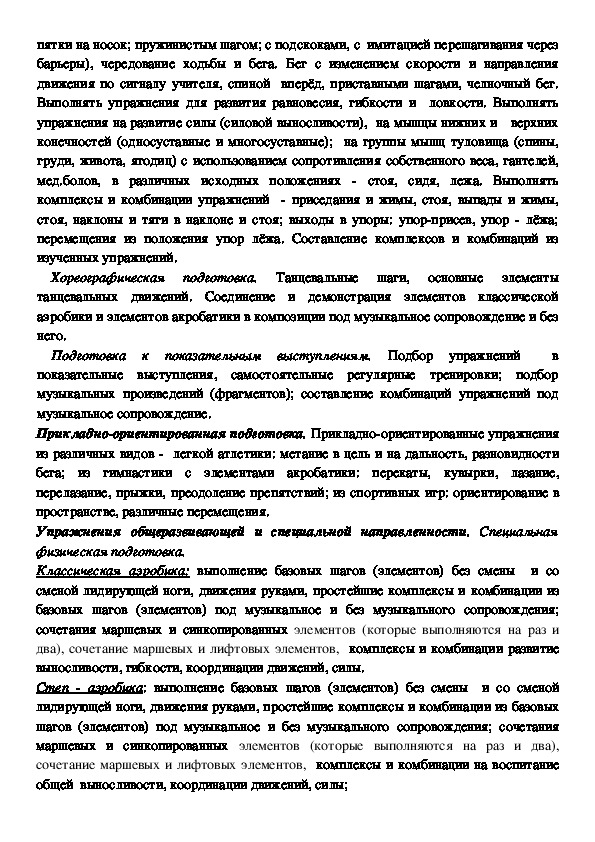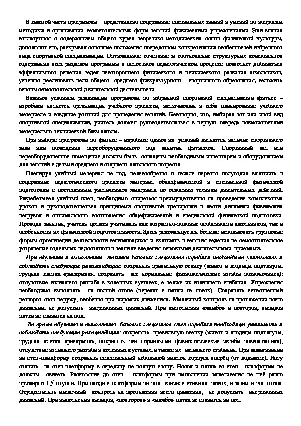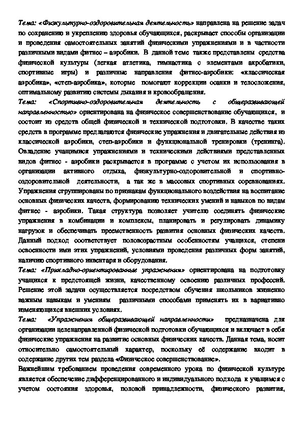 Программа по предмету "Физическая культура" на основе фитнесаэробики для