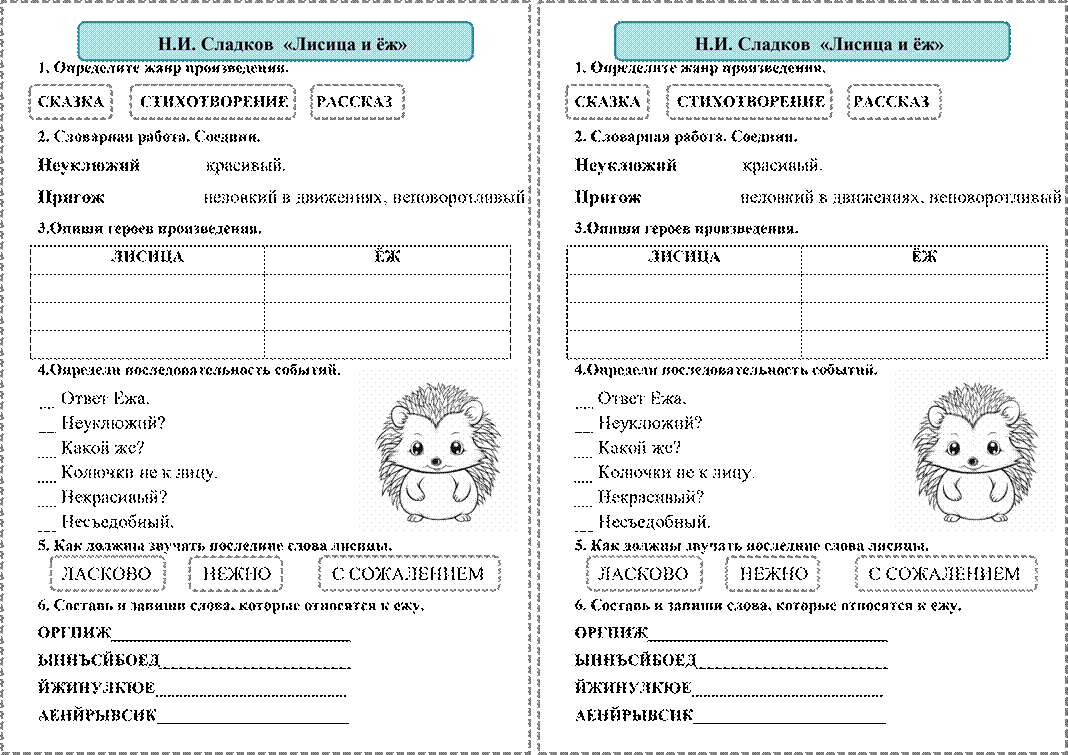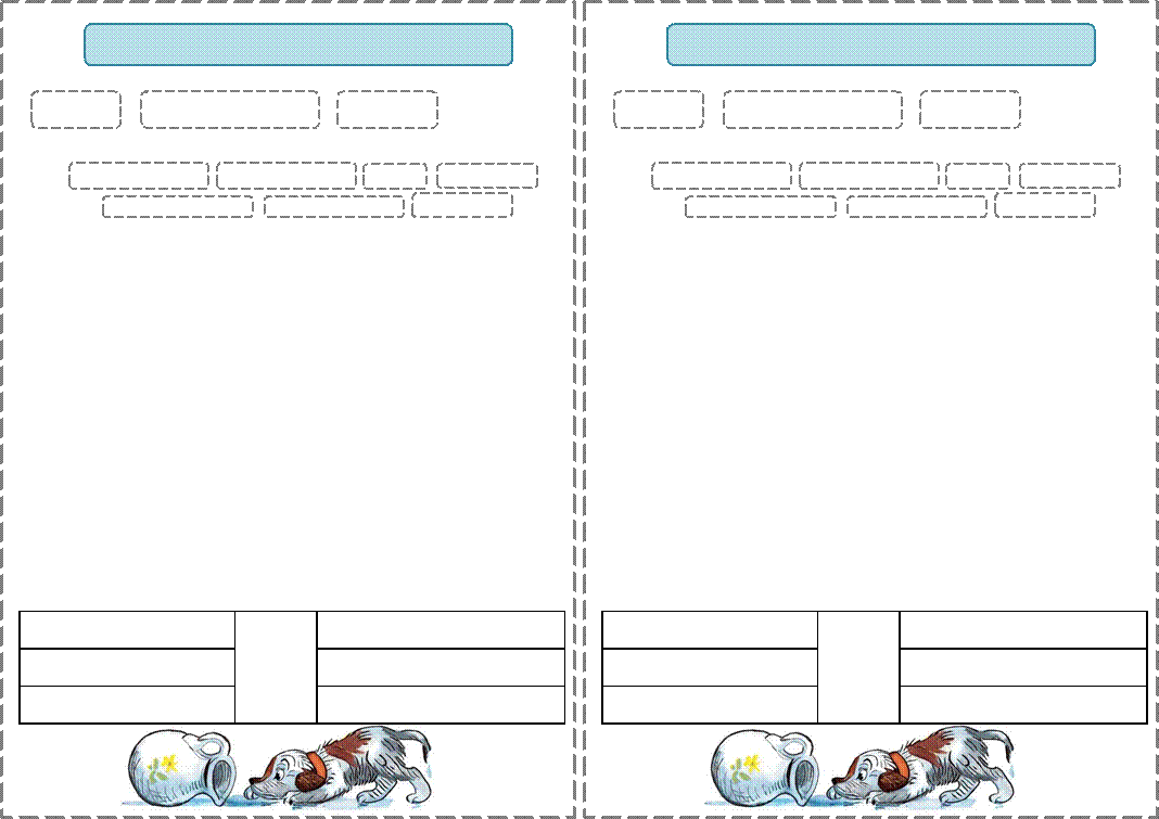 Новосѐл бегемот Кашалот сгрызѐт Займѐт меня Коня осѐл 4.Определи последовательность событий. __ Четыре лапки. __ Будет новосѐл. __ Чтоб щеночка. __ Косточку сгрызѐт. __ Я мечтаю. __ Для меня. __ Имя придумал. __ Не кашалот. 5. Допиши недостающие слова. Он не слон и не ___________________, Не кабан, не _____________________. Он не волк и не ____________________, Не медведь и не ___________________. |
