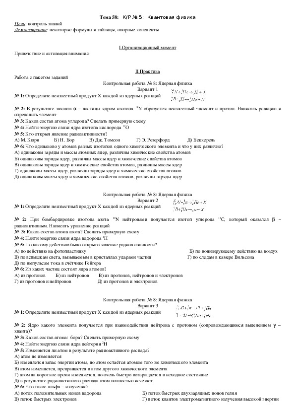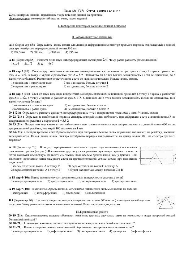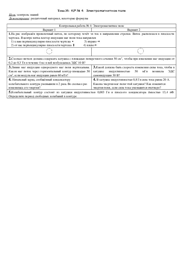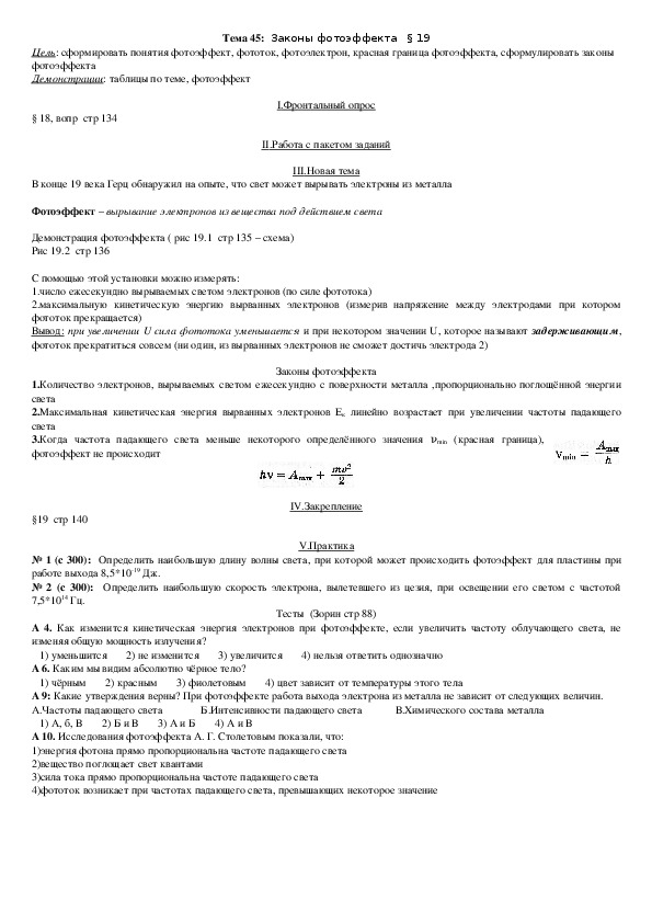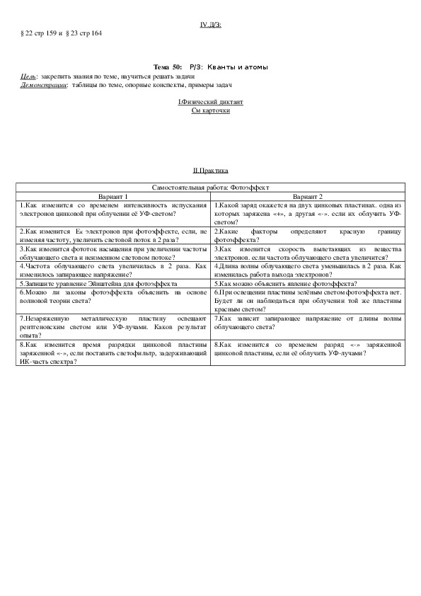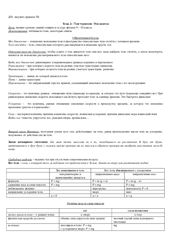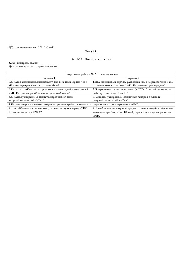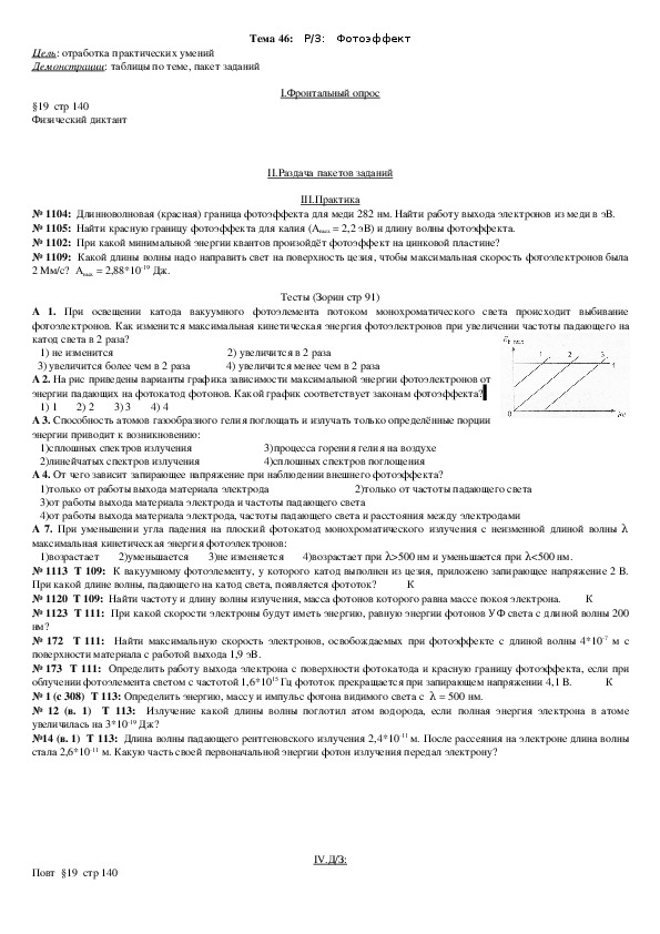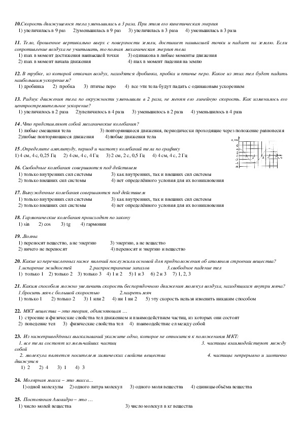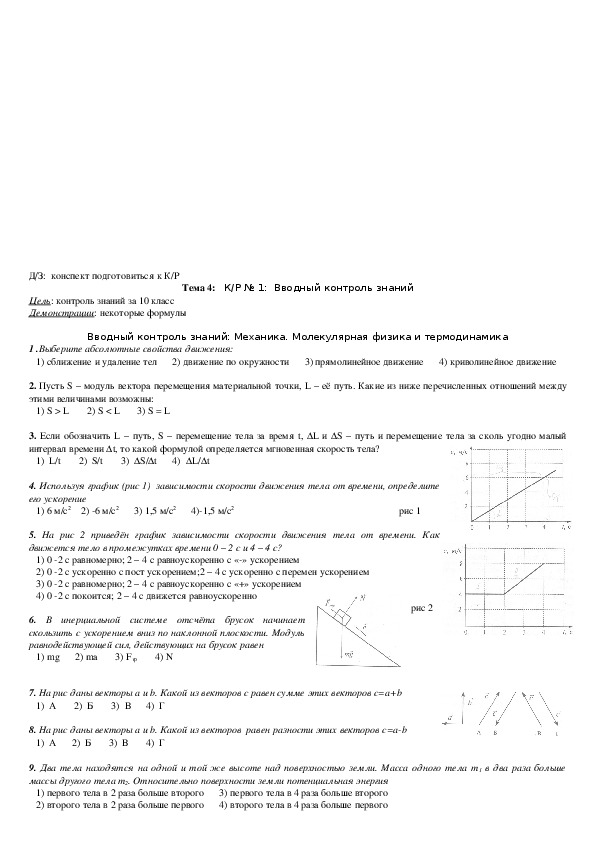 Цель: выявит уровень знаний учащихся за курс физики 9 – 10 класса