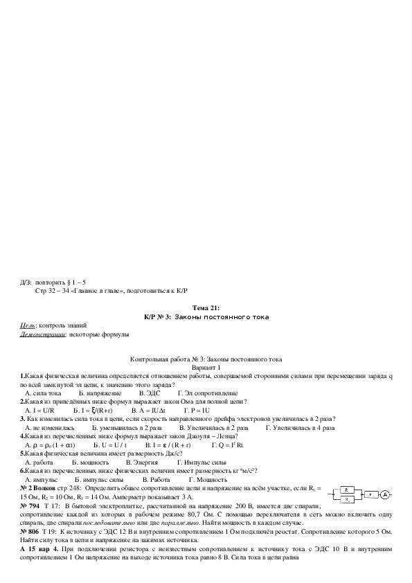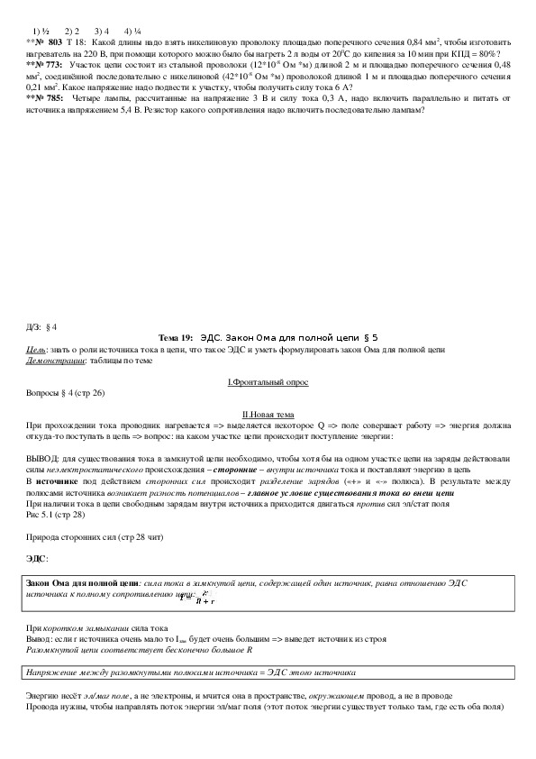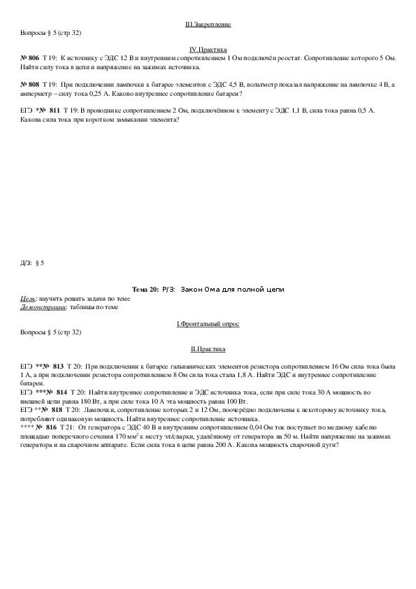 Тема 19: ЭДС. Закон Ома для полной цепи § 5
