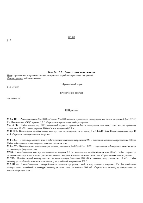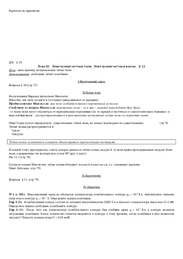 Данный материал представлен в формате Word и предназначен в помощь учителю при составлении рабочих планов по программе к учебнику Генденштейн и Дик. Разработка содержит примерные уроки на весь учебный год в курсе физики 11 класса. Это базовый набор как информации по теории, так и подборка задач. Разработка вариативная. Учитель может добавлять материал, передвигать по темам в зависимости от уровня подготовленности учащихся