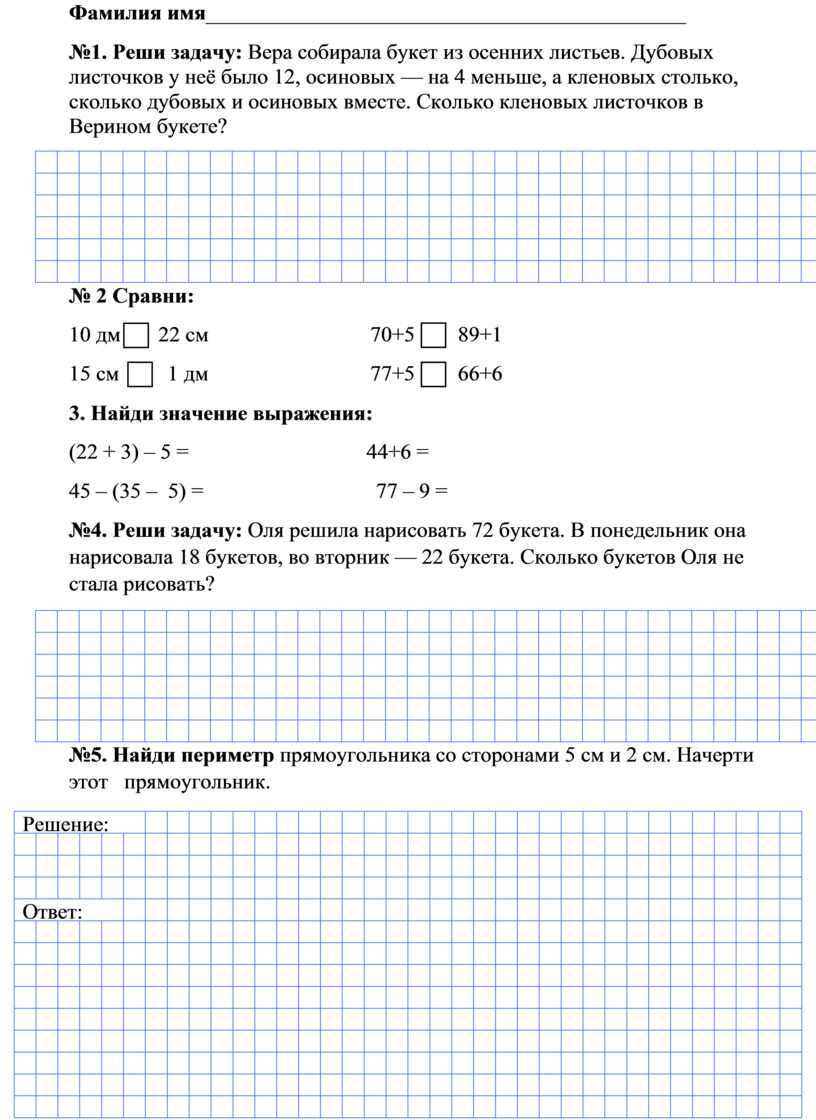№4. Реши задачу: Оля решила нарисовать 72 букета. В понедельник она нарисовала 18 букетов, во вторник — 22 букета. Сколько букетов Оля не стала рисовать?