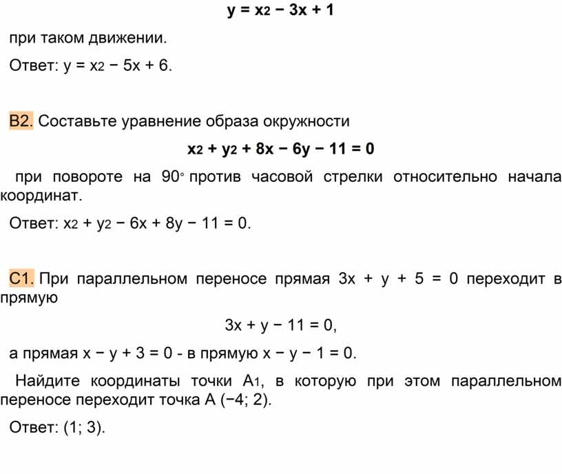 В1. При параллельном переносе точка А (4; 3) переходит в точку А1 (5; 4). Напишите уравнение кривой, в которую переходит парабола