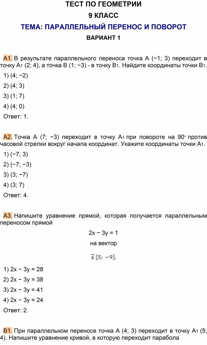 ТЕМА: ПАРАЛЛЕЛЬНЫЙ ПЕРЕНОС И ПОВОРОТ