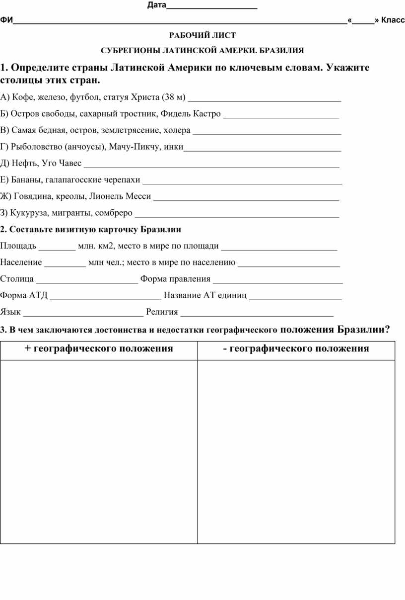 СУБРЕГИОНЫ ЛАТИНСКОЙ АМЕРКИ. БРАЗИЛИЯ