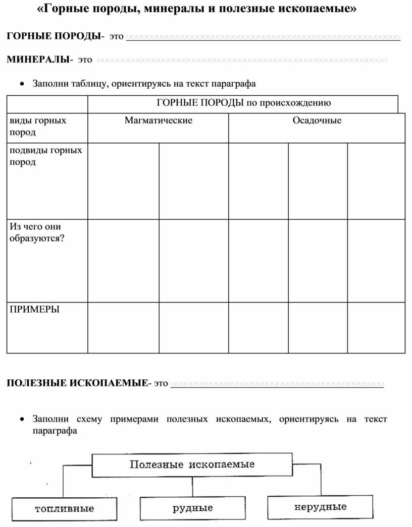 · Заполни схему примерами полезных ископаемых, ориентируясь на текст параграфа