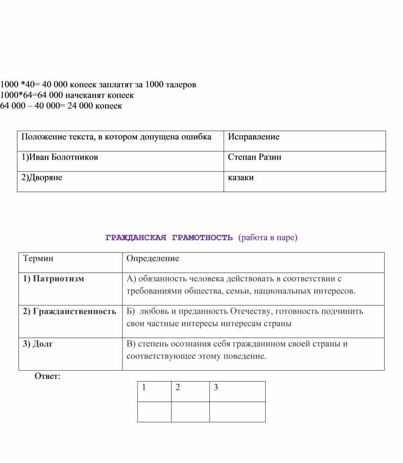 ГРАЖДАНСКАЯ ГРАМОТНОСТЬ (работа в паре)