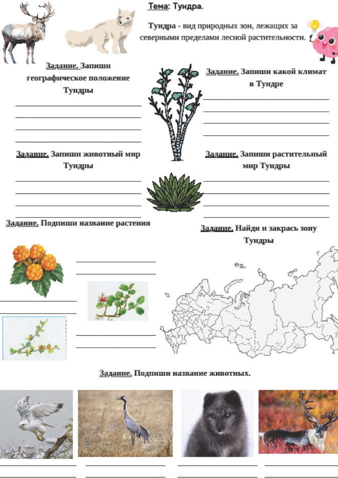 Рабочий лист к уроку окружающего мира по теме "Тундра", 4 класс, УМК "Школа России"