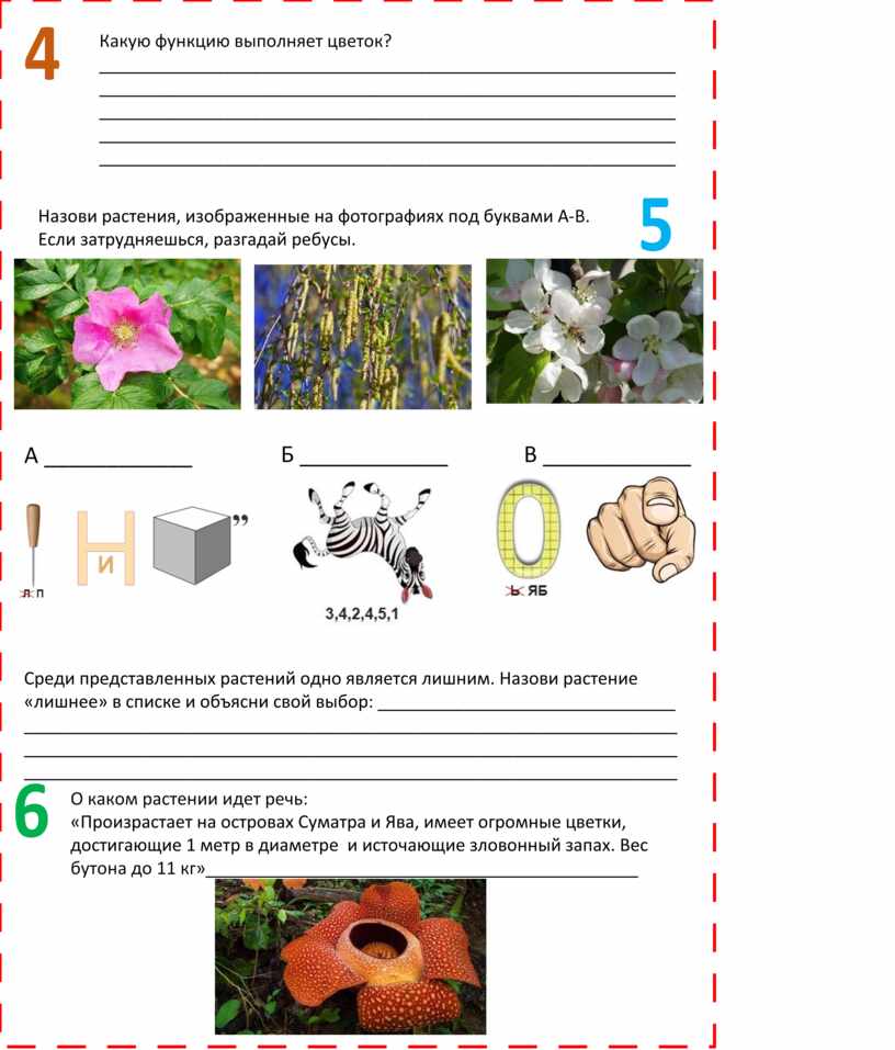 4. Привлечение насекомых, образование половых клеток, защита зародыша, образование плодов.