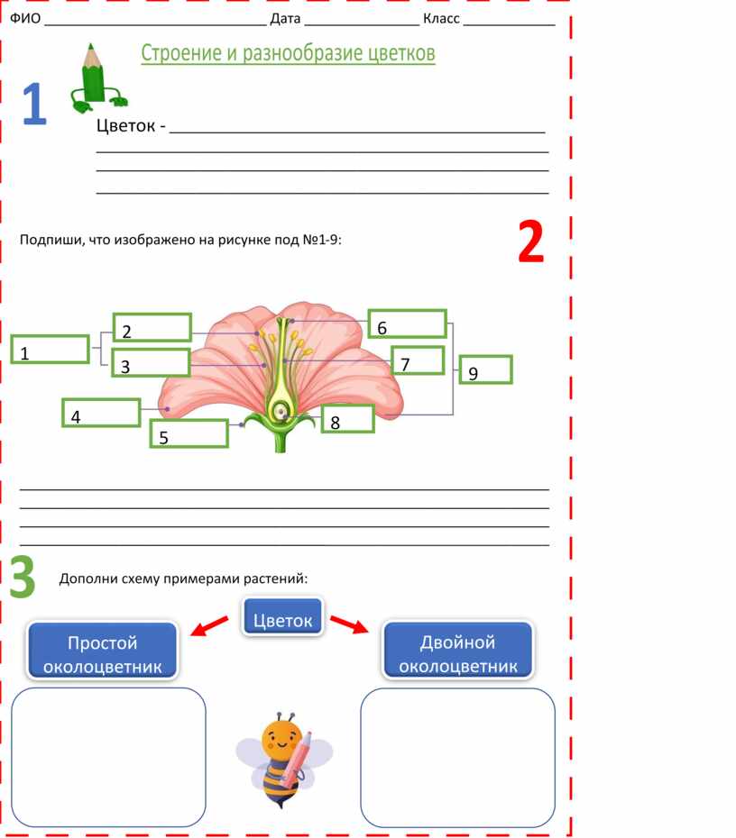 2. 1- тычинка, 2- пыльник, 3- тычиночная нить, 4- лепесток, 5чашелистик, 6 – рыльце, 7- столбик, 8- завязь, 9- пестик