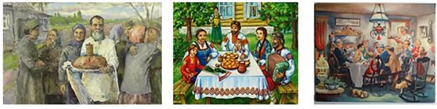 7. Рассмотри рисунки. Какие традиции гостеприимства русского народа изображены?