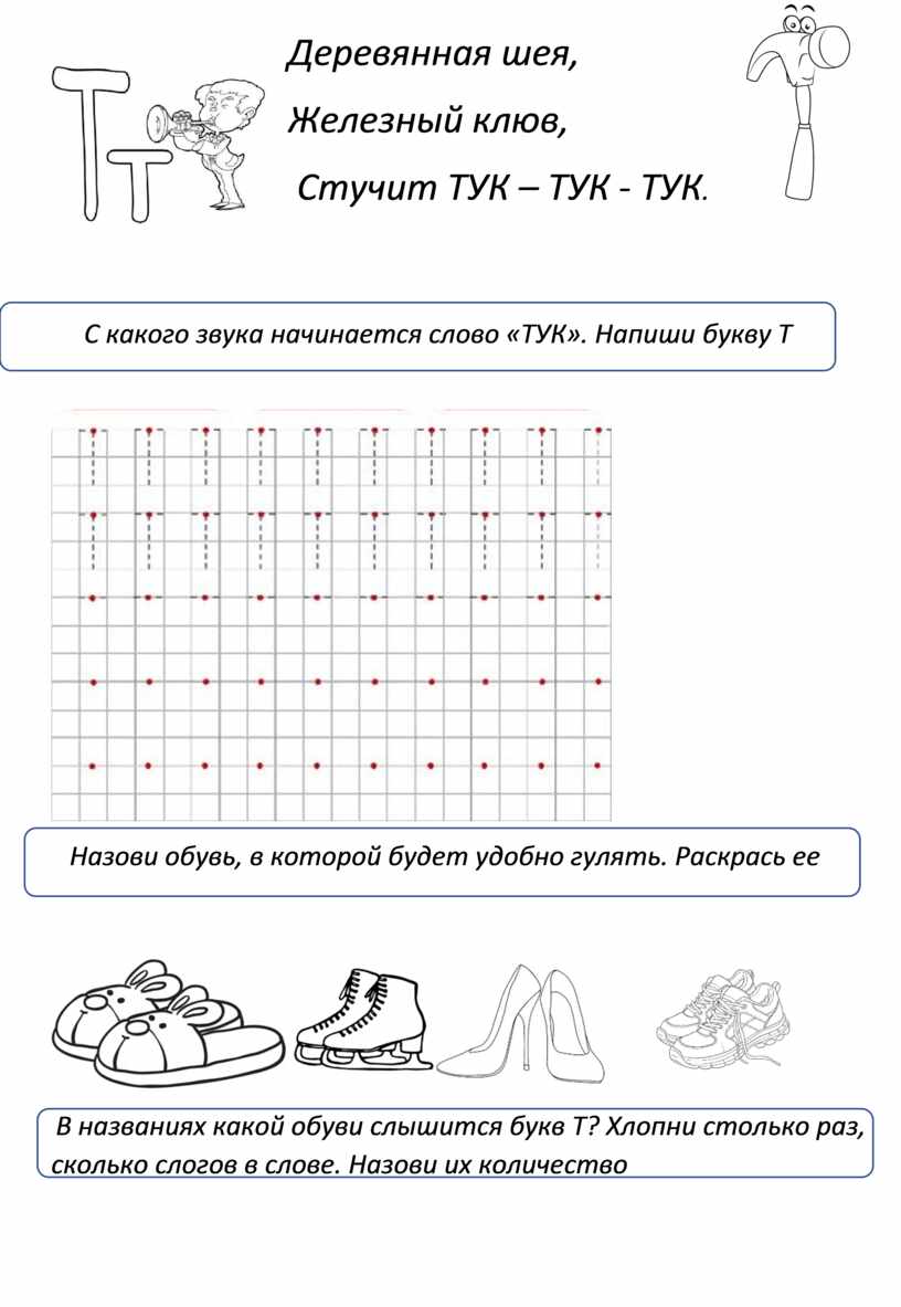С какого звука начинается слово «ТУК». Напиши букву Т