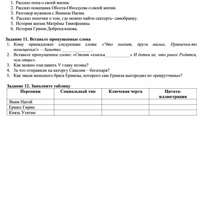 Практическая работа по поэме Н. А. Некрасова «Кому на Руси жить хорошо»