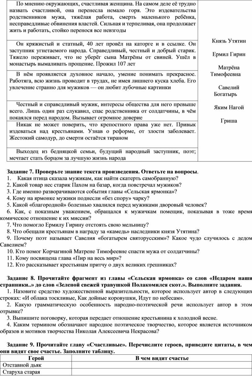 Задание 8. Прочитайте фрагмент из главы «Сельская ярмонка» со слов «Недаром наши странники..» до слов «Зеленой свежей травушкой Полакомился скот.». Выполните задания.