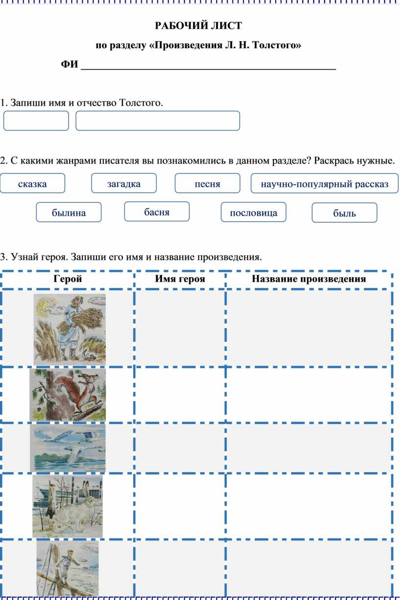 С какими жанрами писателя вы познакомились в данном разделе? Раскрась нужные.