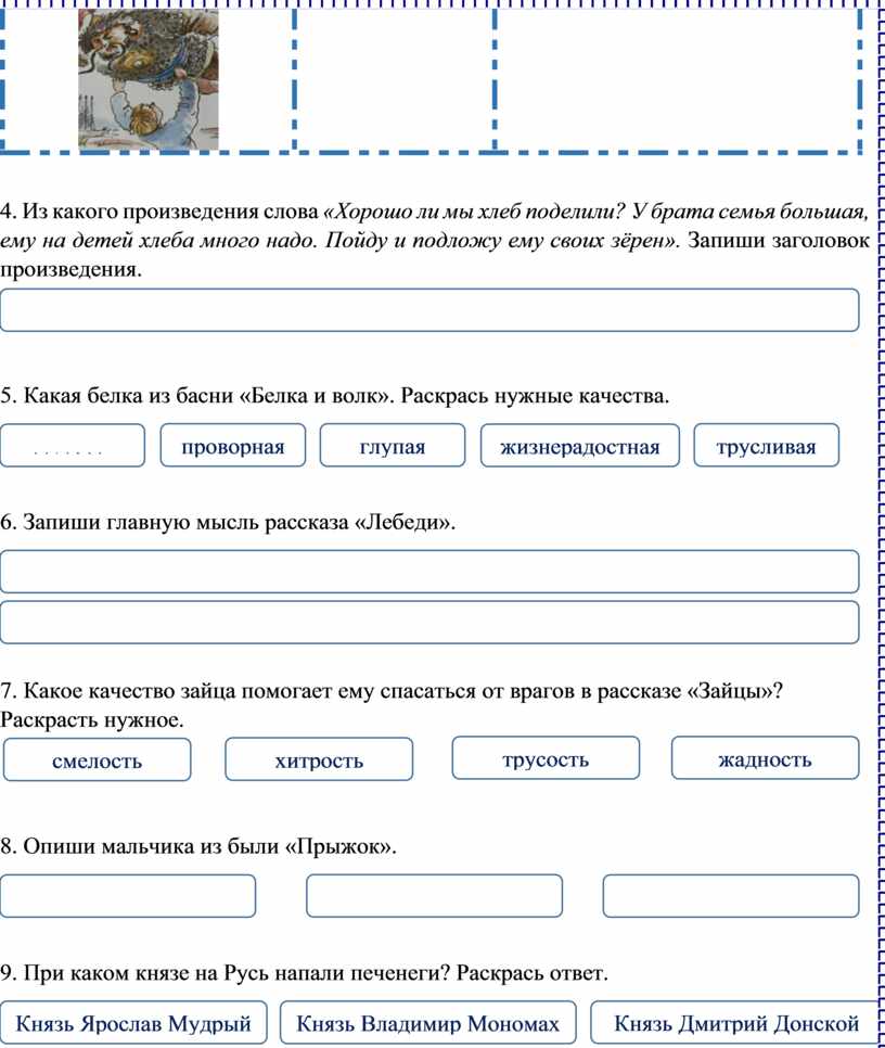 Какая белка из басни «Белка и волк». Раскрась нужные качества.